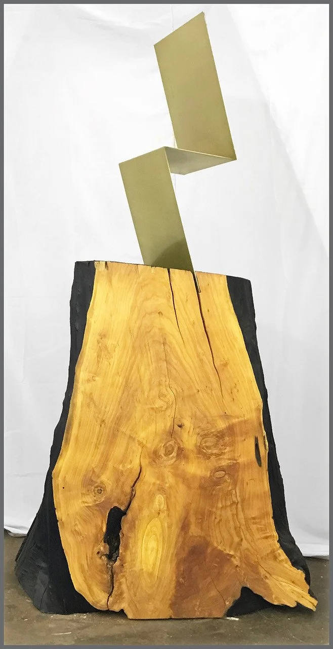 Knapp works primarily with wood but incorporates metal details and accents. She searches for and scavenges huge slabs of wood, tree trunks, and giant burl knobs from old-growth trees. The fact that the materials were once living things makes each piece of raw material unique. Knapp’s years of experience working with wood informs her knowledge of the medium. Whether it is a slab left in its natural form, but planed smooth and highly polished, as in Lighting Strike, or left rough with carved, claw-like forms, as in Beastie Boys, it is evident that Knapp allows the natural form of the tree to guide her decisions. Lightning Strike is a new work that was completed this spring and it will be featured near the museum entrance. Beastie Boys will be arranged in the Art Park plaza and was cast in bronze from four carved and burned pieces of elm.