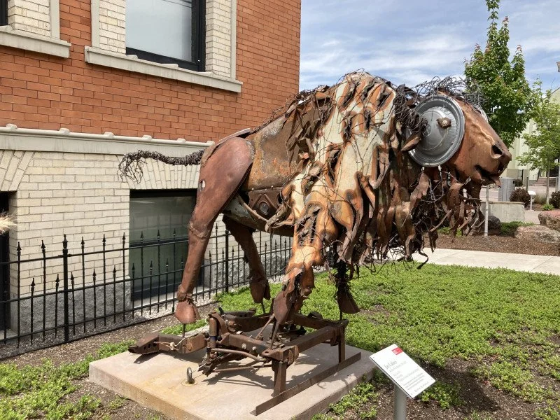 Laber passed away last year after a long battle with cancer. He left a strong legacy of public artwork. When he returned to Montana in the late 1990s, he enrolled at Salish Kootenai College (SKC) in Pablo to study forestry. After taking art classes on the side, he began making sculptures of warriors, dancers, and wildlife out of reused car parts. Laber’s innovative sculptures depict traditional Native culture using found and salvaged metal. Laber said, “It’s a new twist on an old tradition…to make things out of whatever was handy, and that was handy.”