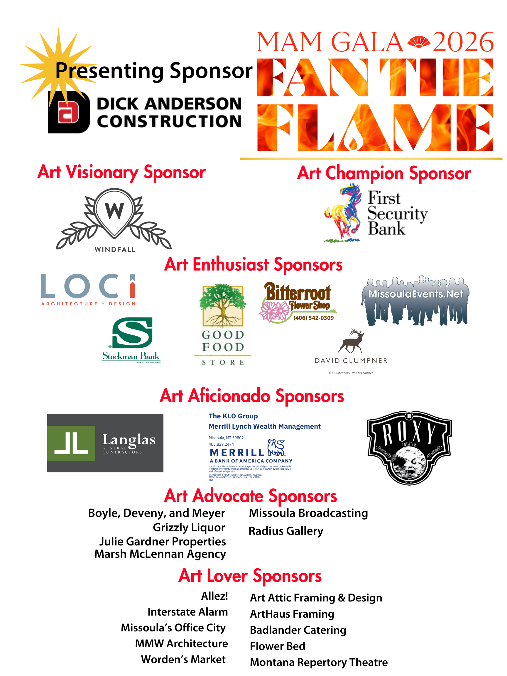 MAM Gala 2026: Fan the Flame brought more than 400 guests together at the UC Ballroom for an inspiring evening celebrating art, community, and the future of the Missoula Art Museum. The annual Benefit Art Auction raised a record-breaking $436,225 to support exhibitions, education programs, free admission, and regional artists.